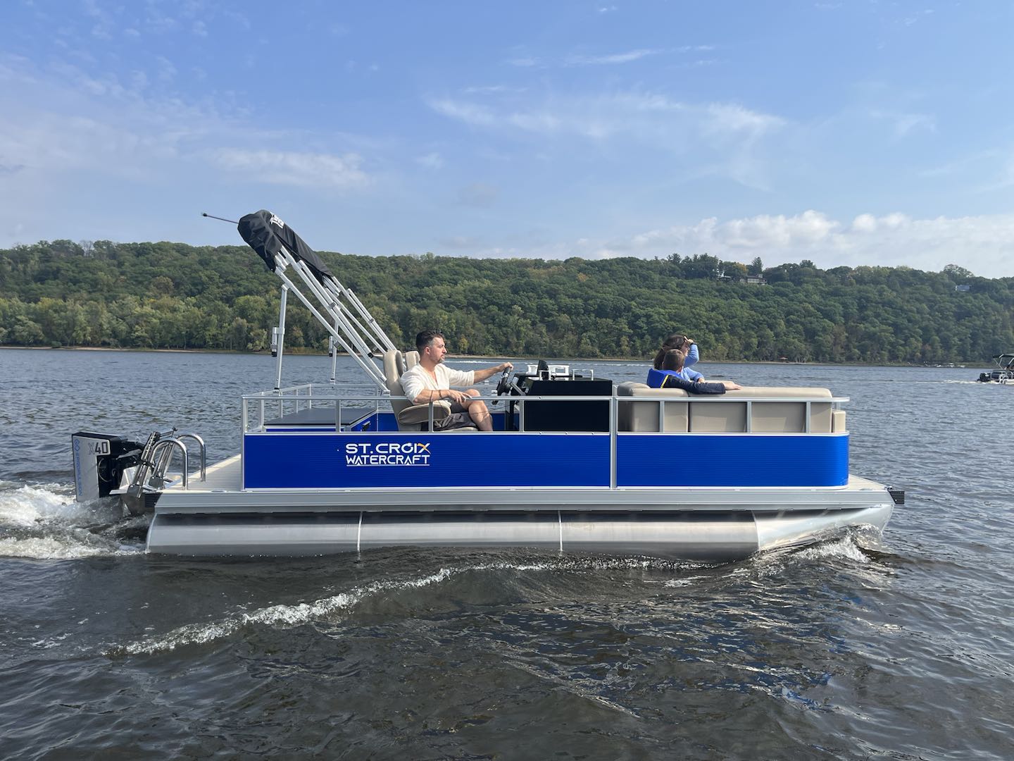 This 2023 16' is an electric Pontoon from Northstar Pontoons, powered by a 40 kW ePropulsion motor and a 41 kWh battery pack, offering a quiet and eco-friendly boating experience.