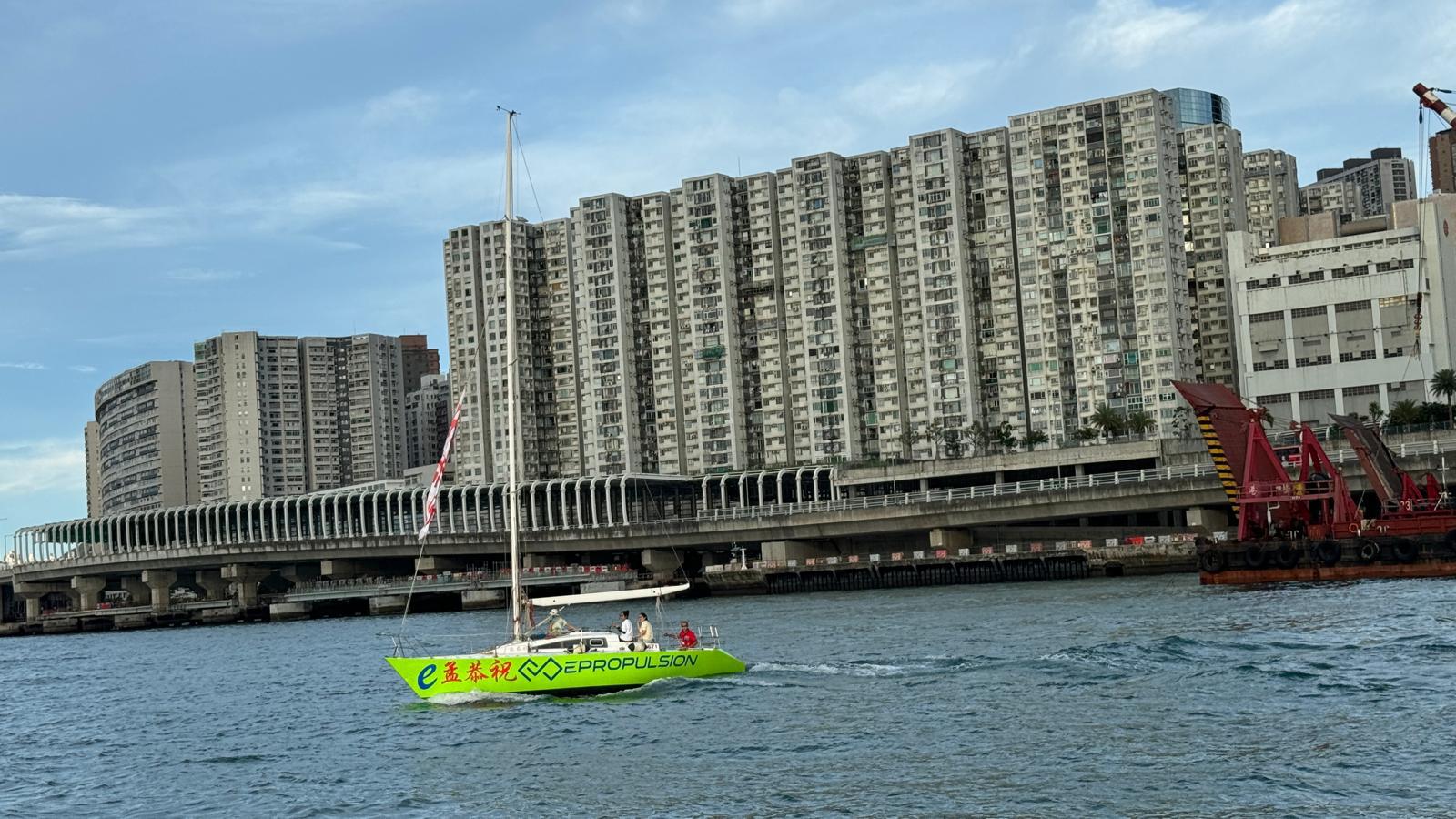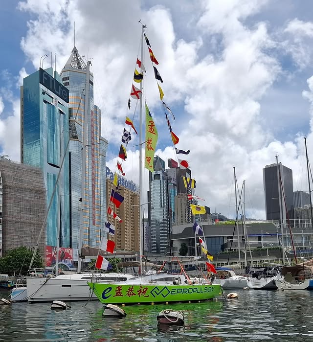This 1985 eManggongzhu is an electric Sailing Yacht from Regatta Yachts HK, powered by a 12 kW ePropulsion motor and a 20 kWh battery pack, offering a quiet and eco-friendly boating experience.