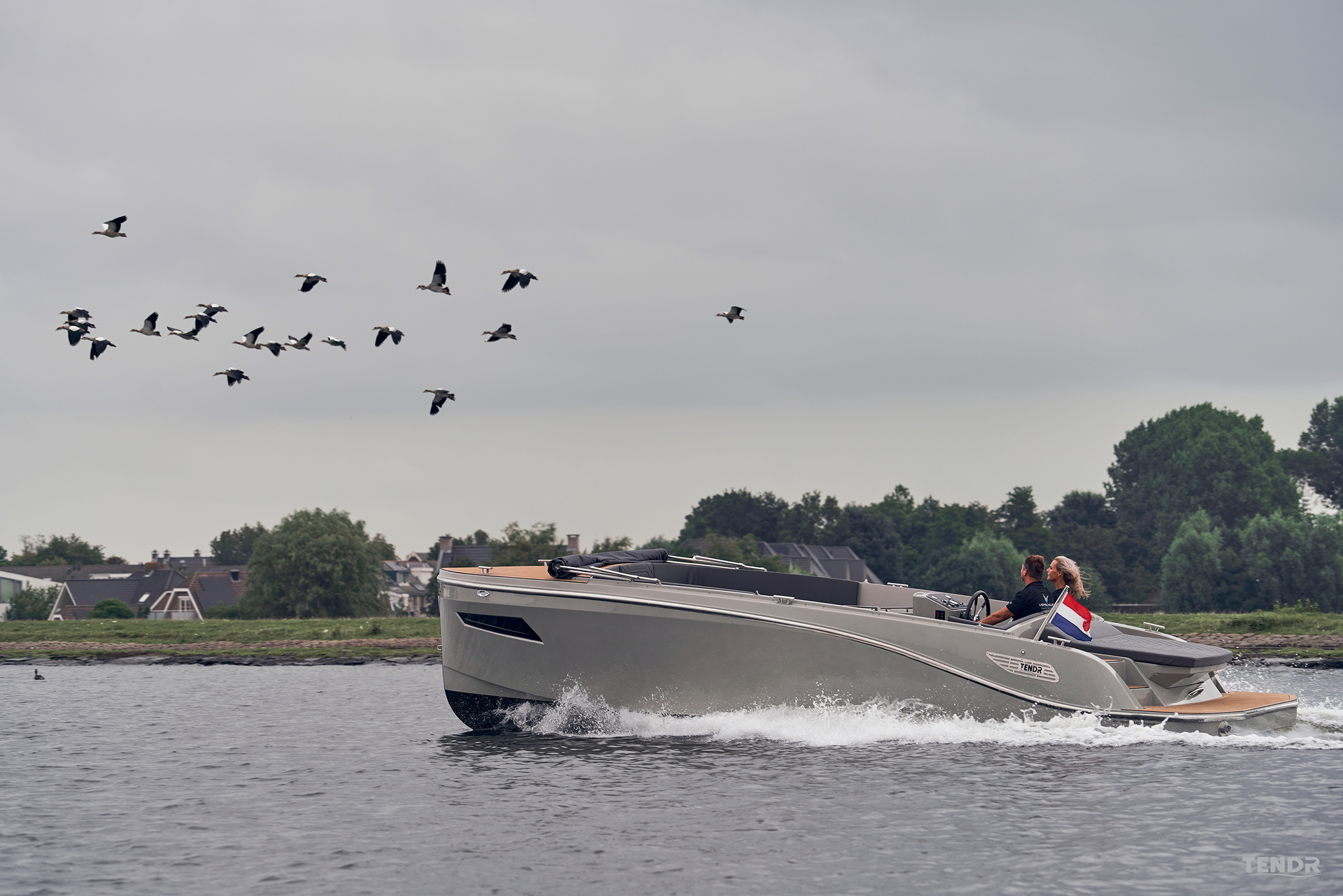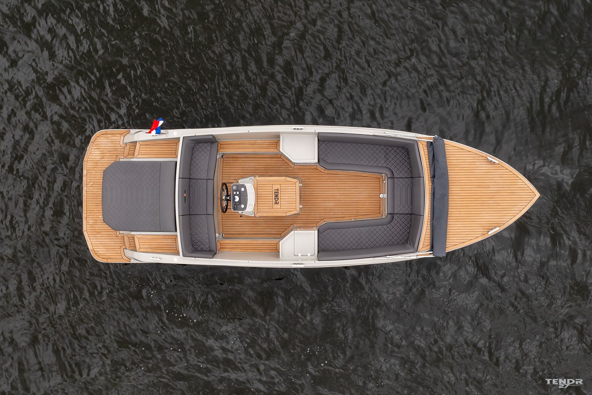 This 2024 TendR 27 is an electric Motorboat from TendR Yachts, powered by a 20 kW ePropulsion motor and a 31 kWh battery pack, offering a quiet and eco-friendly boating experience.