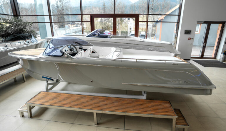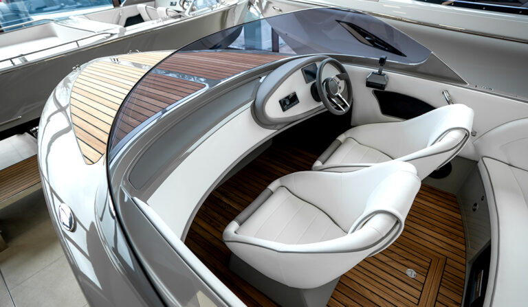 This 2025 Magic 640 is an electric Motorboat from Marian, powered by a 12 kW ePropulsion motor and a 20 kWh battery pack, offering a quiet and eco-friendly boating experience.