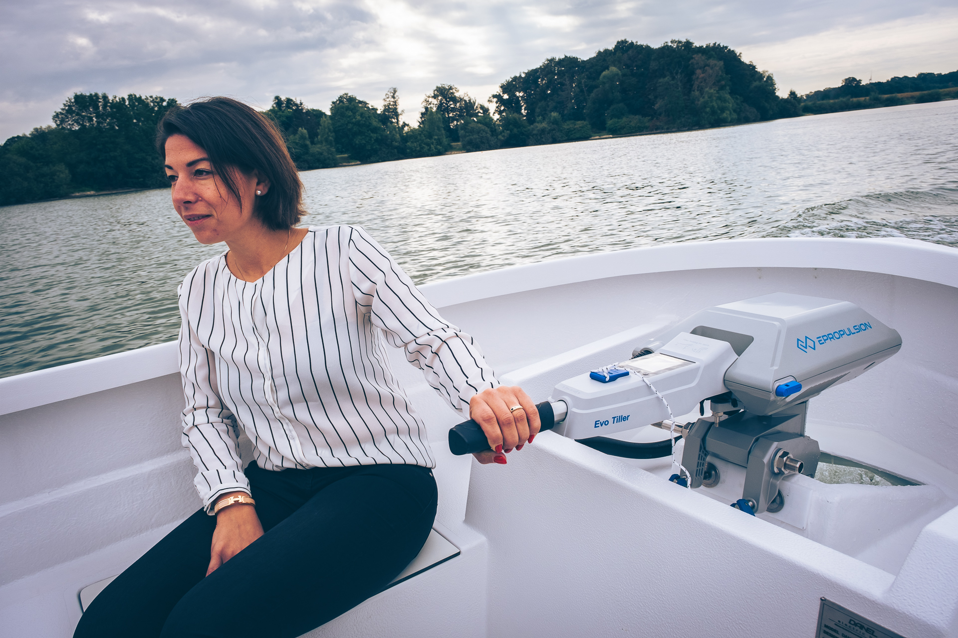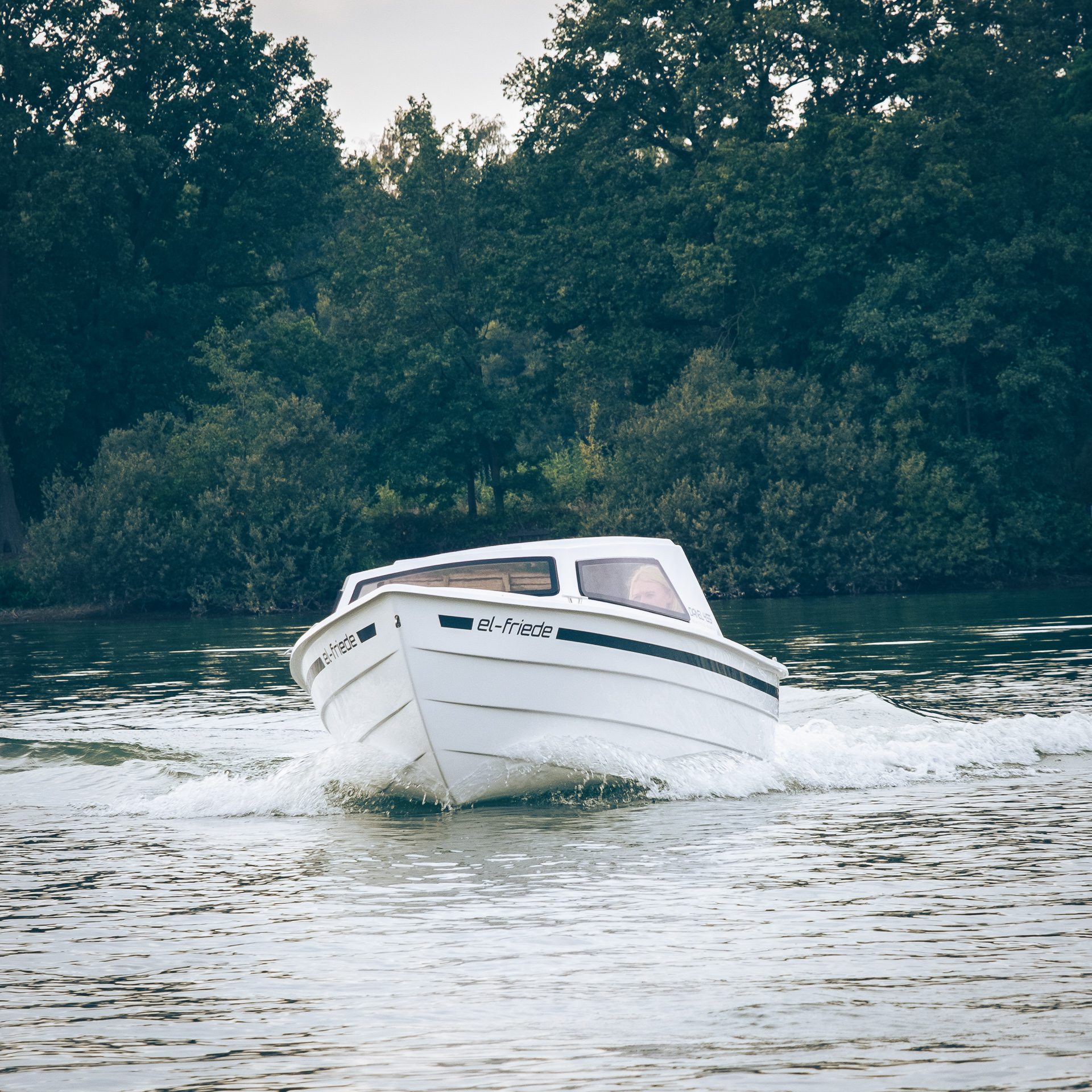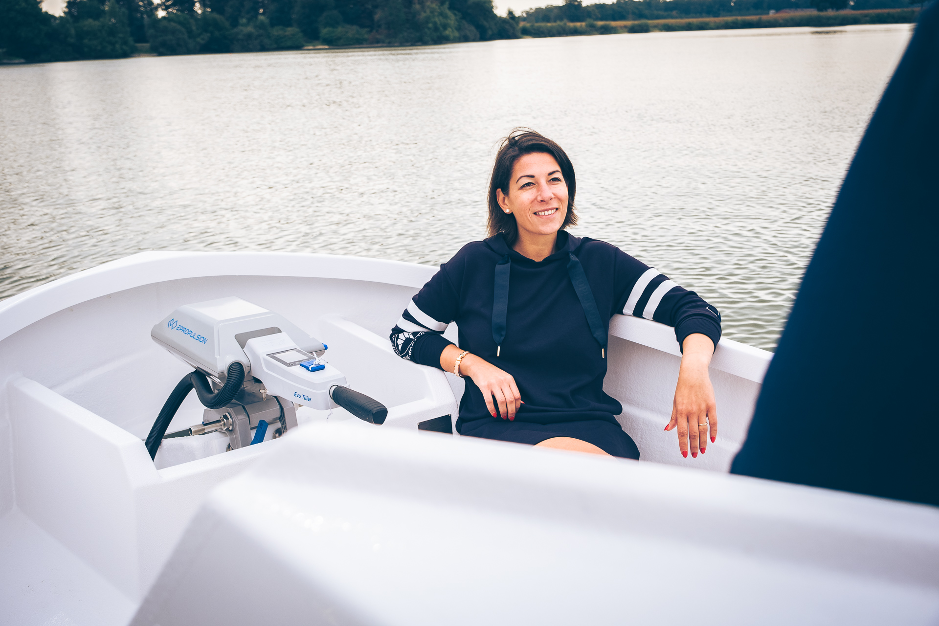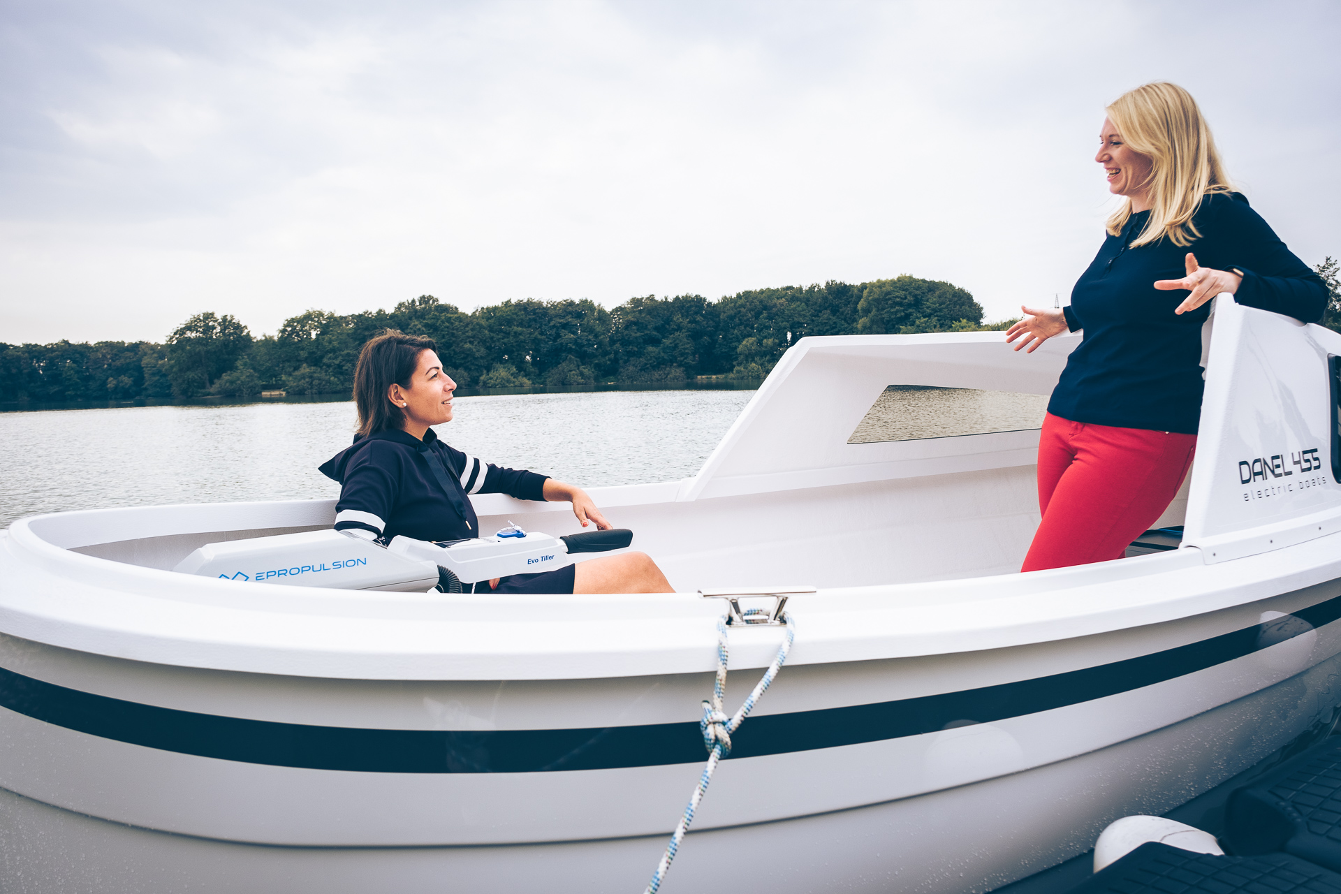 This 2021 455 is an electric Motorboat from Danel, powered by a 6 kW ePropulsion motor and a 9 kWh battery pack, offering a quiet and eco-friendly boating experience.