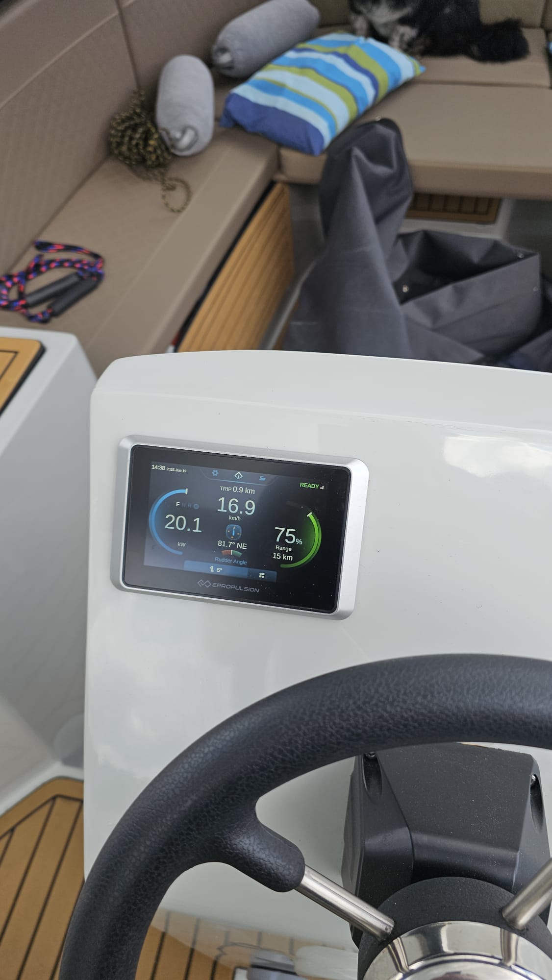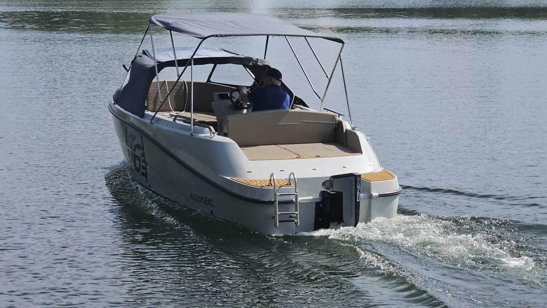 This 2024 AQUA 615 is an electric Motorboat from FEMIS, powered by a 20 kW ePropulsion motor and a 20 kWh battery pack, offering a quiet and eco-friendly boating experience.