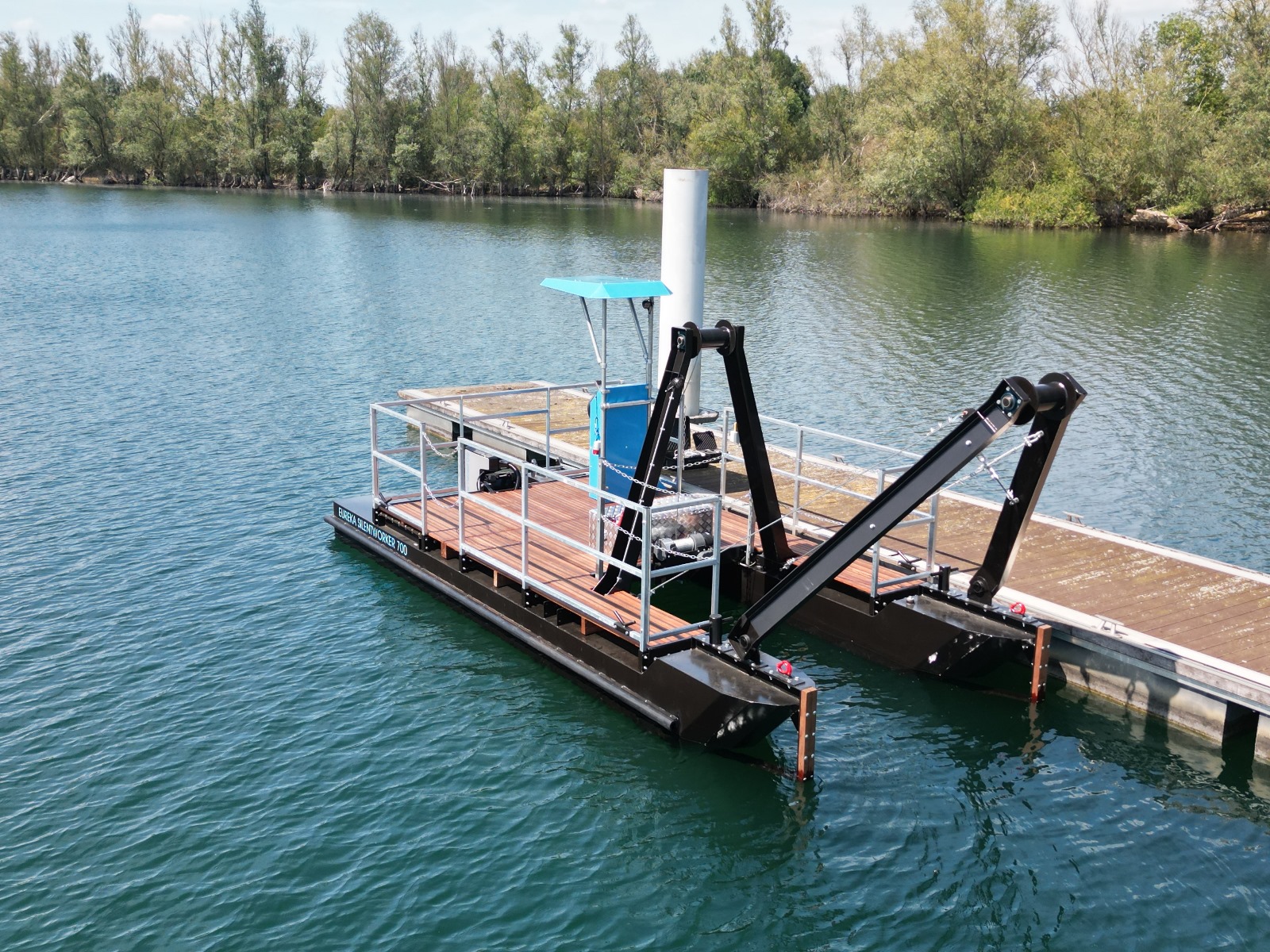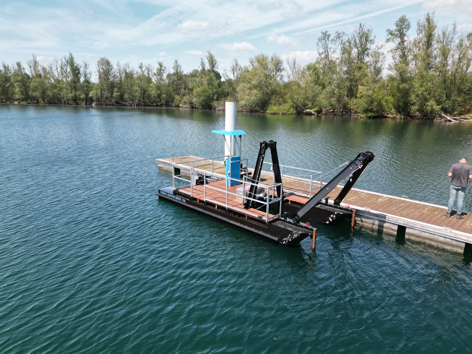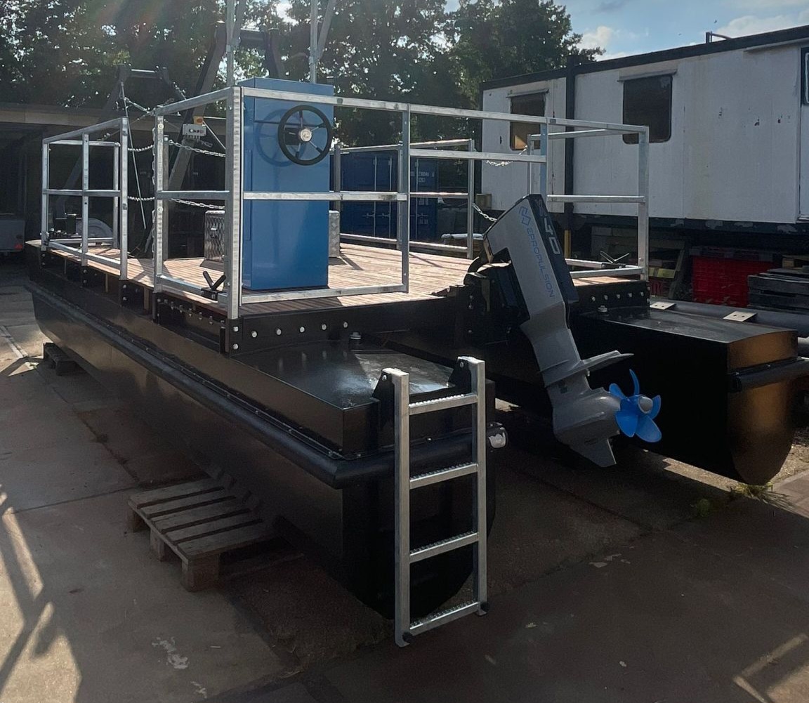 This 2025 Silentworker 700 is an electric Dredger from EUREKA, powered by a 40 kW ePropulsion motor and a 94 kWh battery pack, offering a quiet and eco-friendly boating experience.