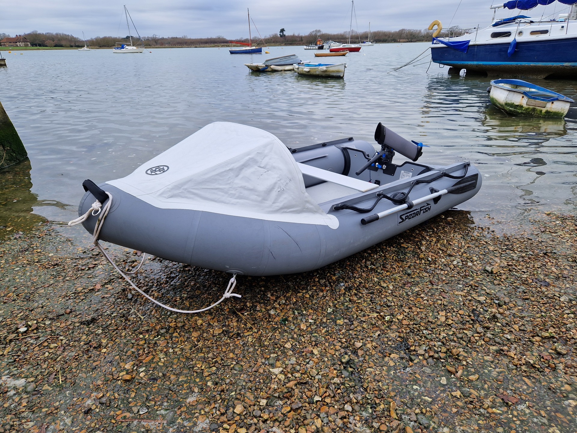 This 2025 310 is an electric Inflatable Dinghy from SpearFish, powered by a 500 W ePropulsion motor and a 378 Wh battery pack, offering a quiet and eco-friendly boating experience.