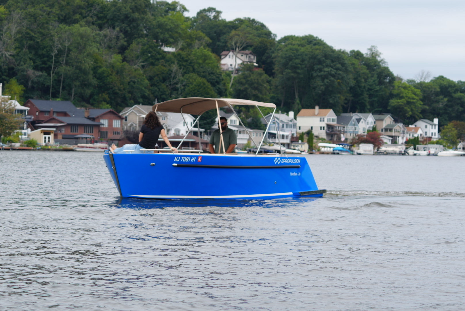 This 2024 630 is an electric sloop from Maxima Boats, powered by a 20 kW ePropulsion motor and a 20 kWh battery pack, offering a quiet and eco-friendly boating experience.