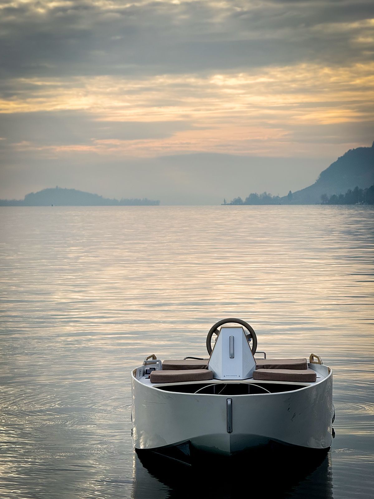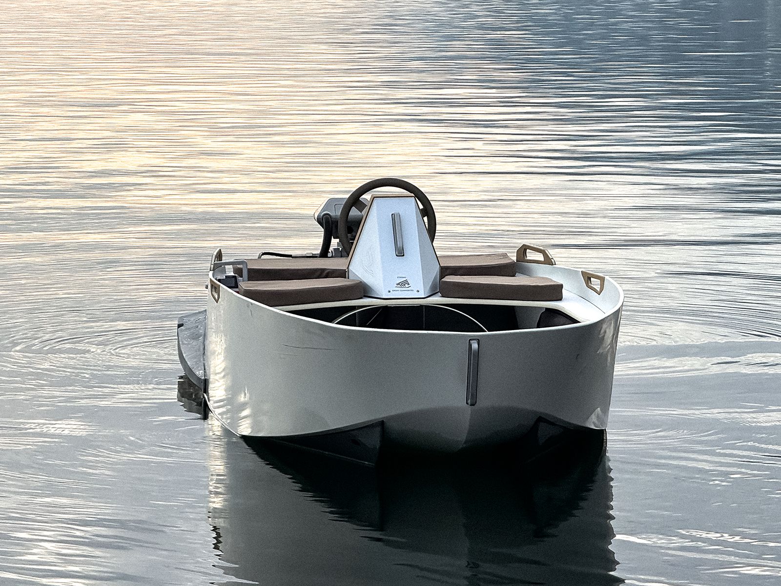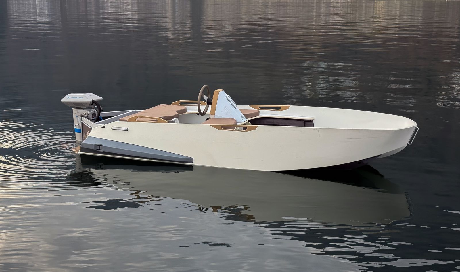 This 2024 Kart 388 is an electric Pleasure boat from MarineKart, powered by a 6 kW ePropulsion motor and a 5 kWh battery pack, offering a quiet and eco-friendly boating experience.