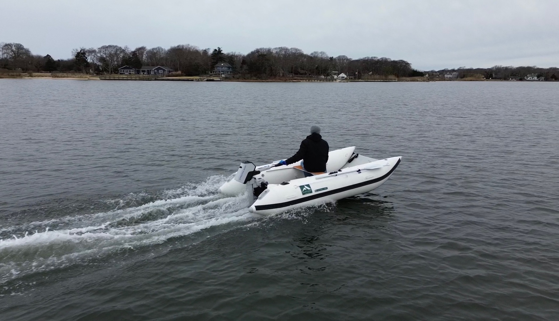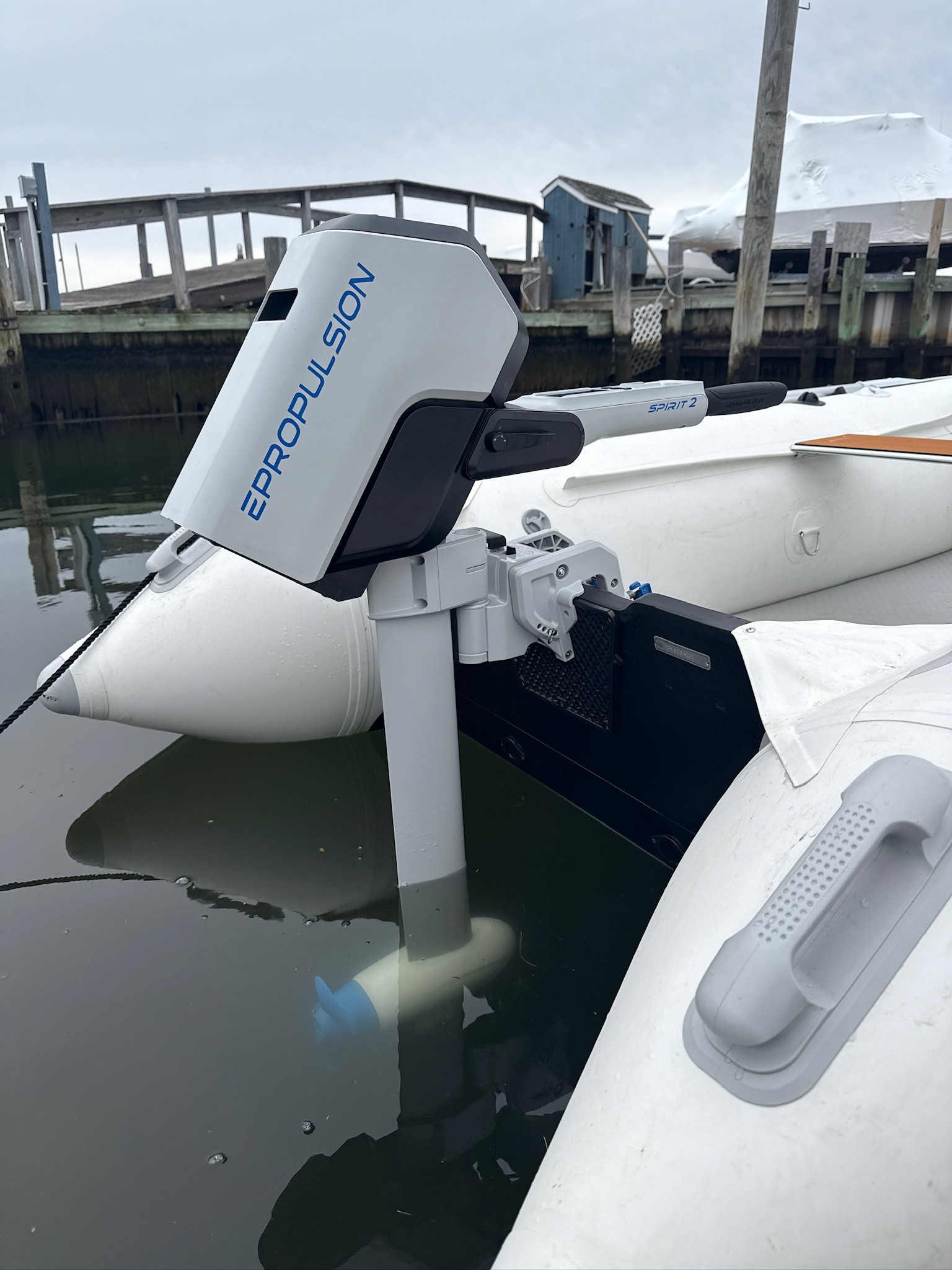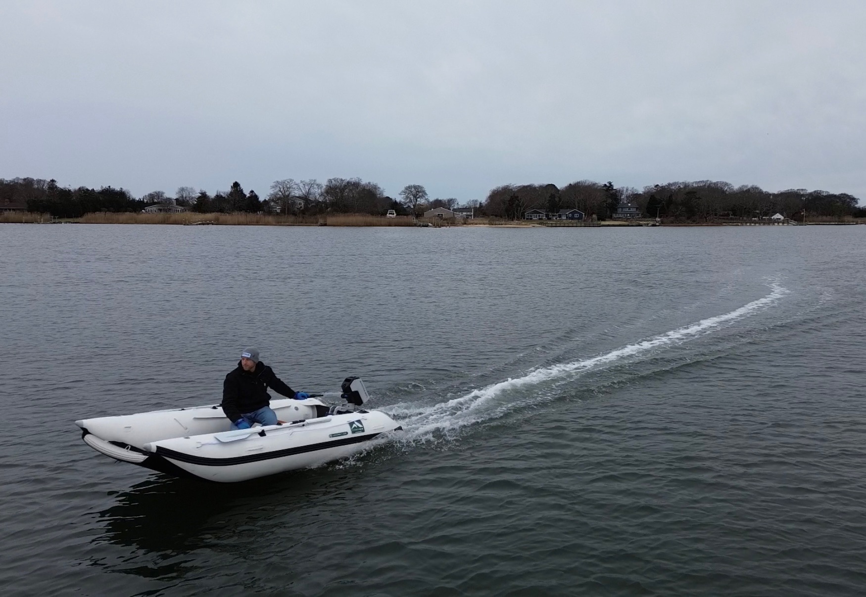 This 2025 Laguna 330 is an electric Inflatable Dinghy from Further Customs, powered by a 2 kW ePropulsion motor and a 1,539 Wh battery pack, offering a quiet and eco-friendly boating experience.