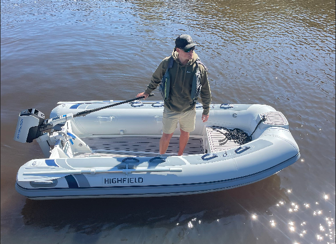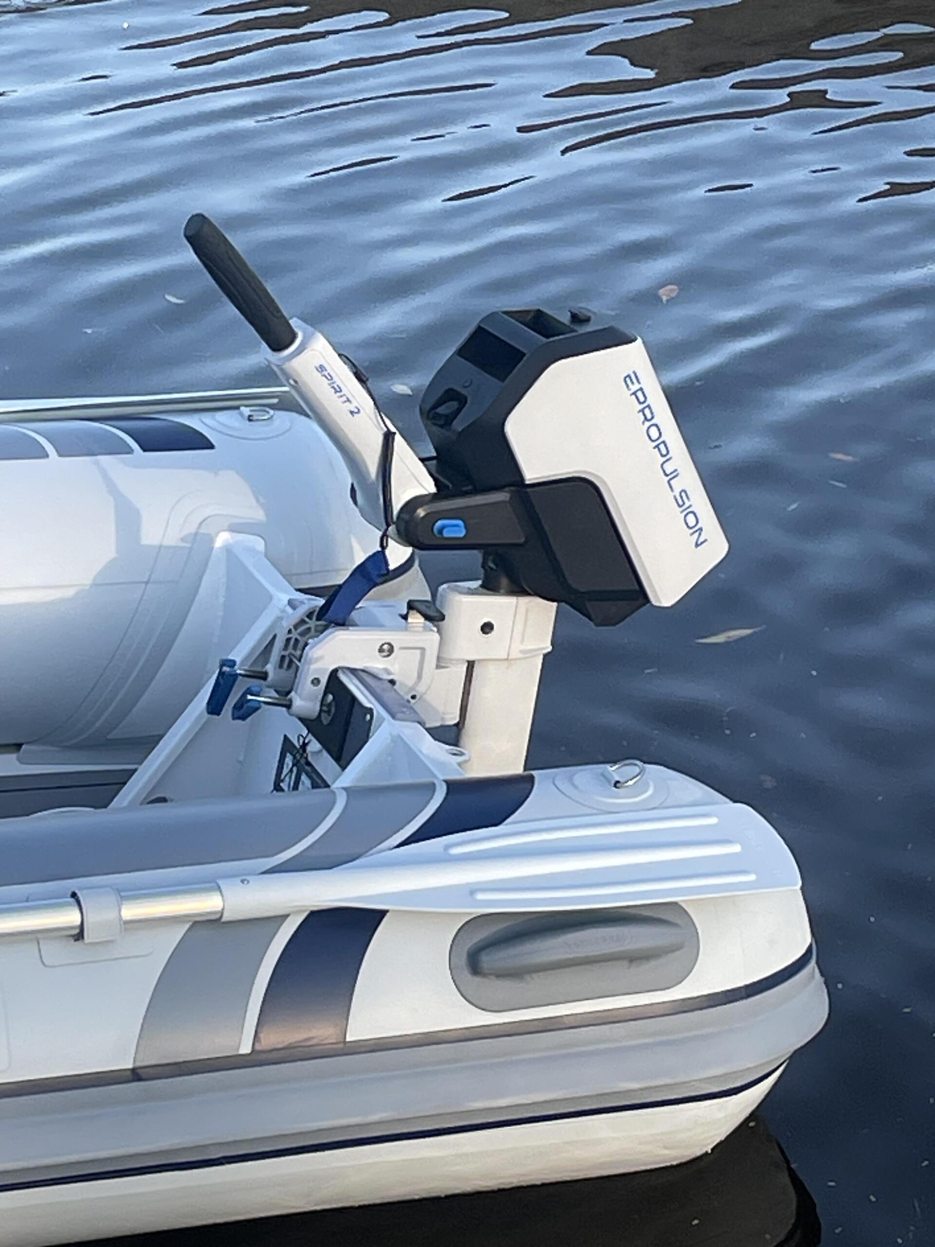 This 2025 CL310 is an electric RIB from Highfield, powered by a 2 kW ePropulsion motor and a 1,539 Wh battery pack, offering a quiet and eco-friendly boating experience.
