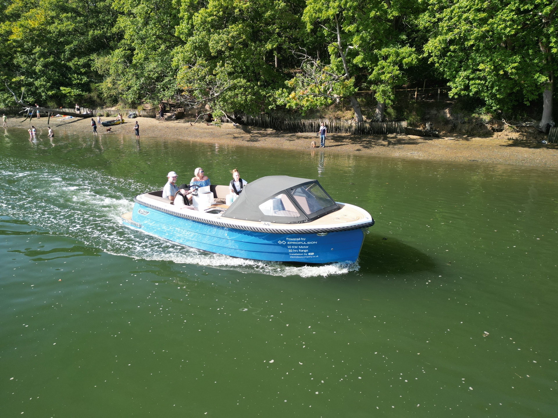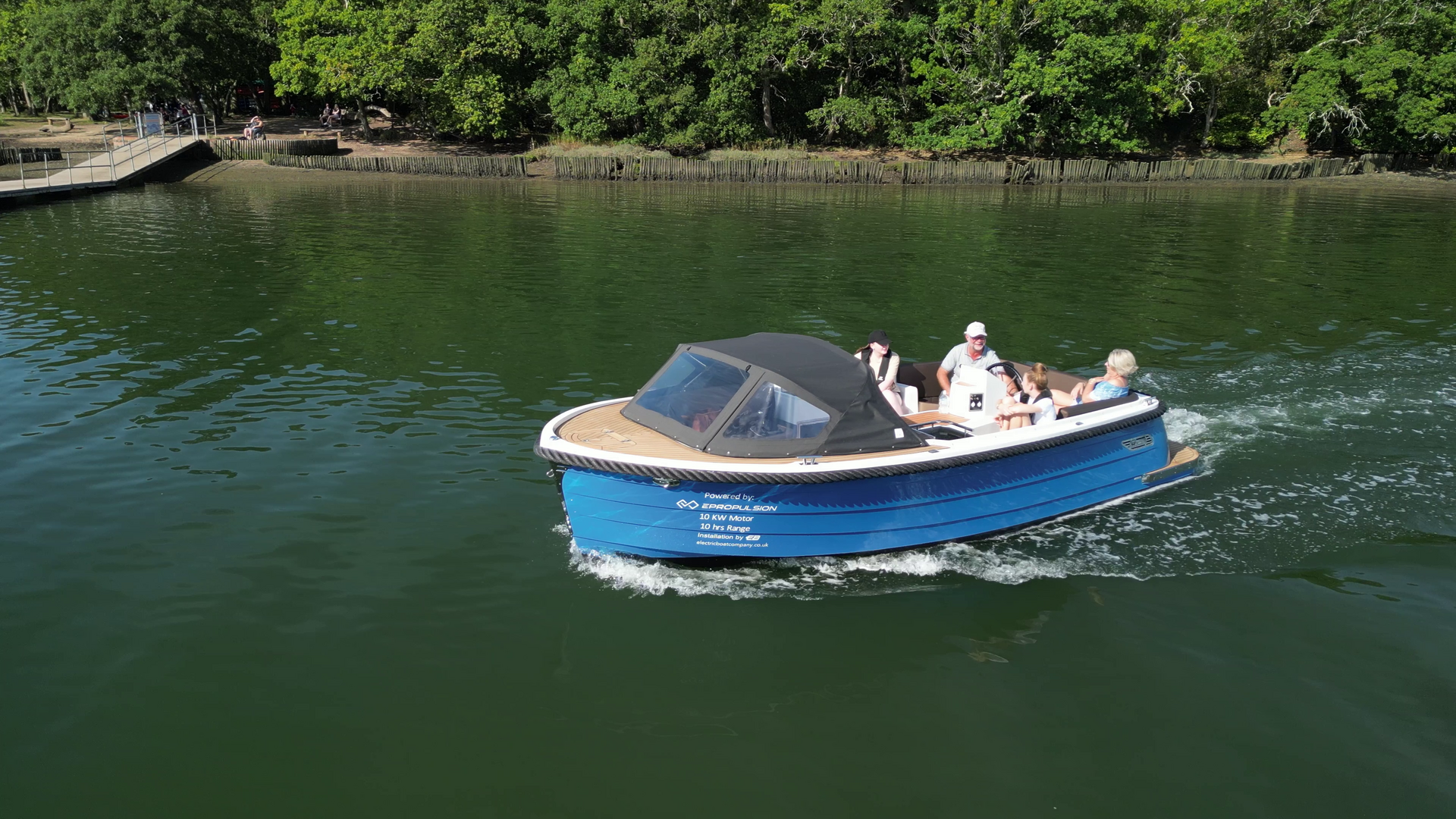 This 2023 GS22 Tender is an electric Motorboat from GS Boats, powered by a 10 kW ePropulsion motor and a 20 kWh battery pack, offering a quiet and eco-friendly boating experience.