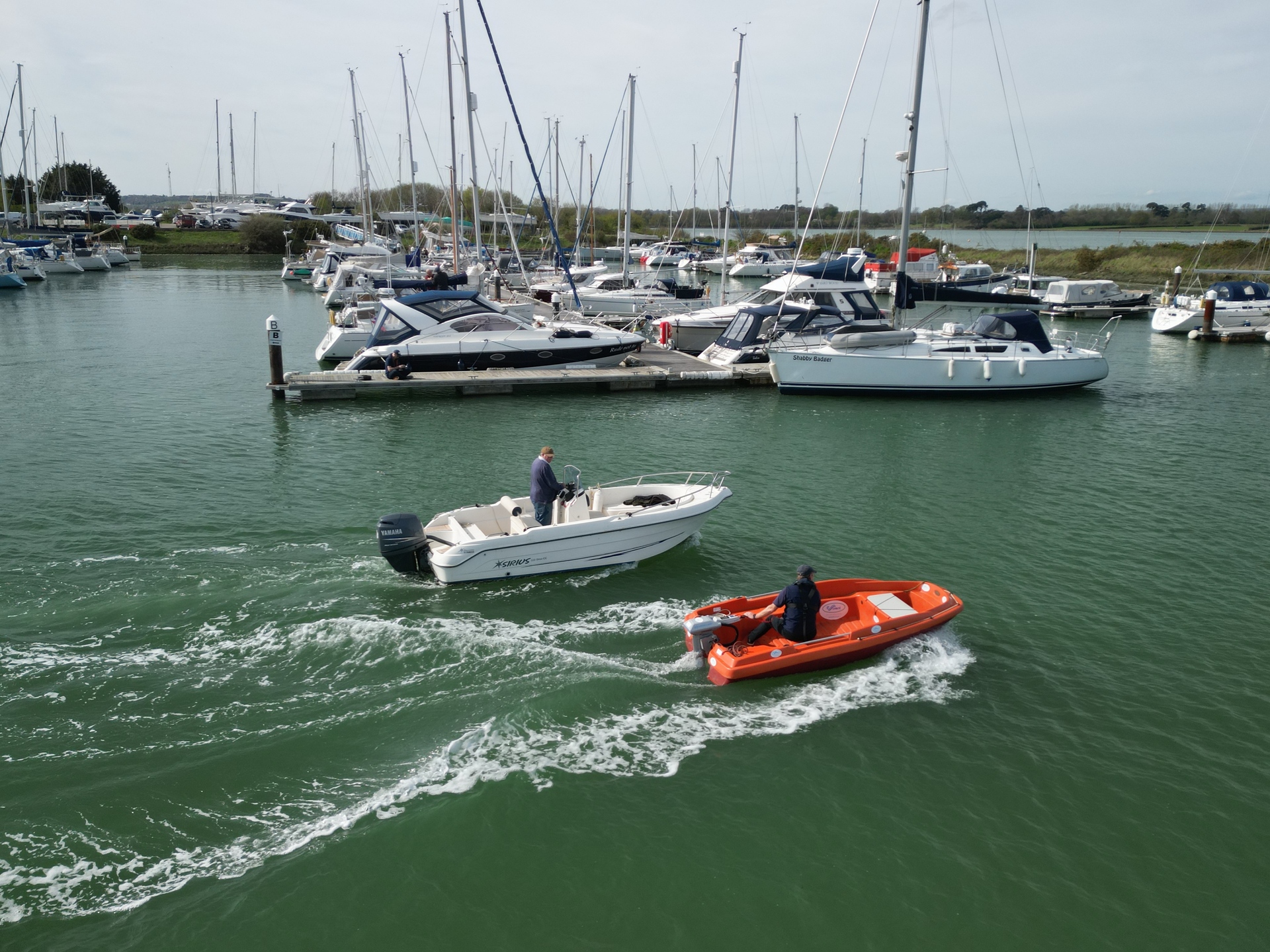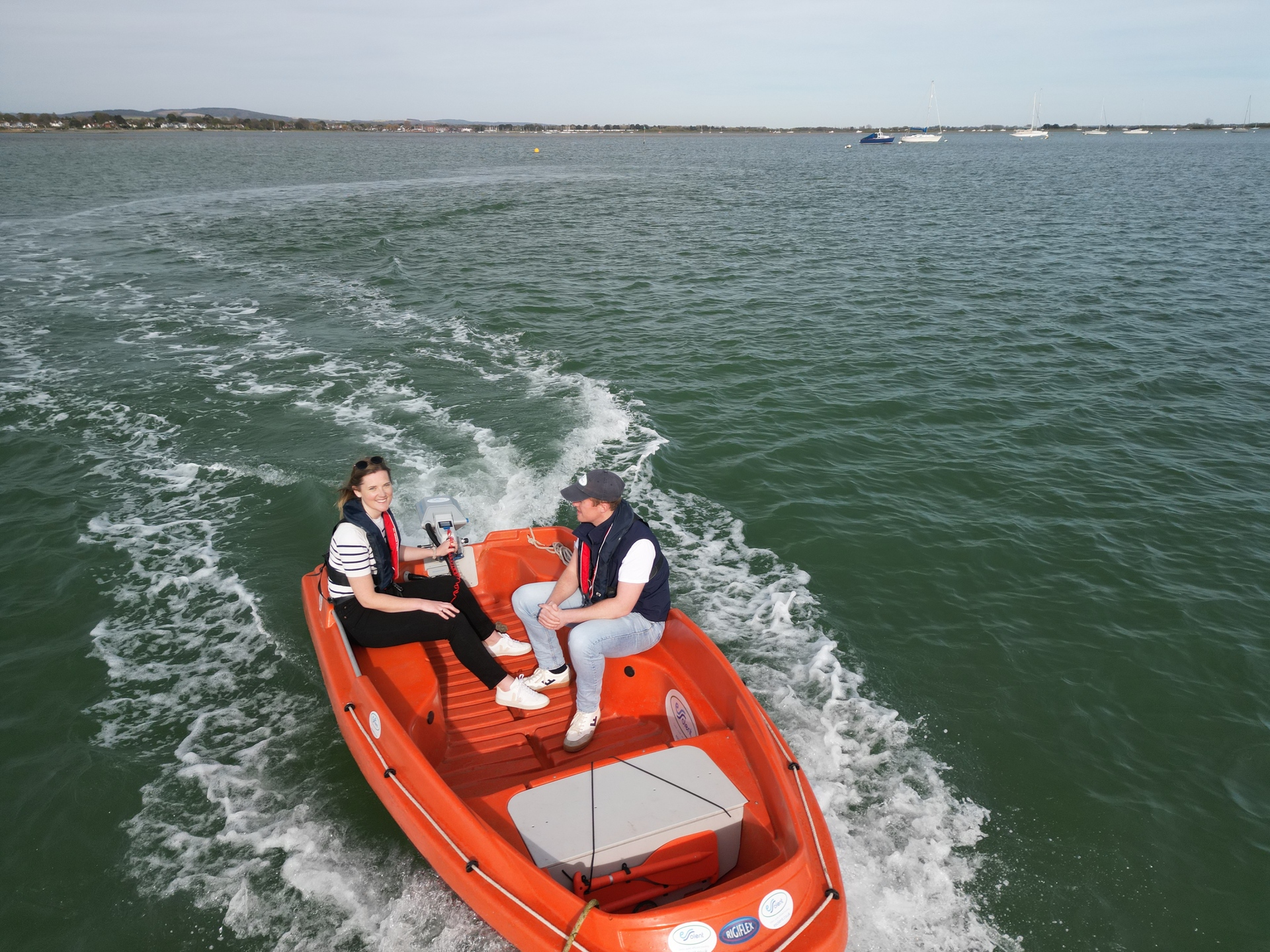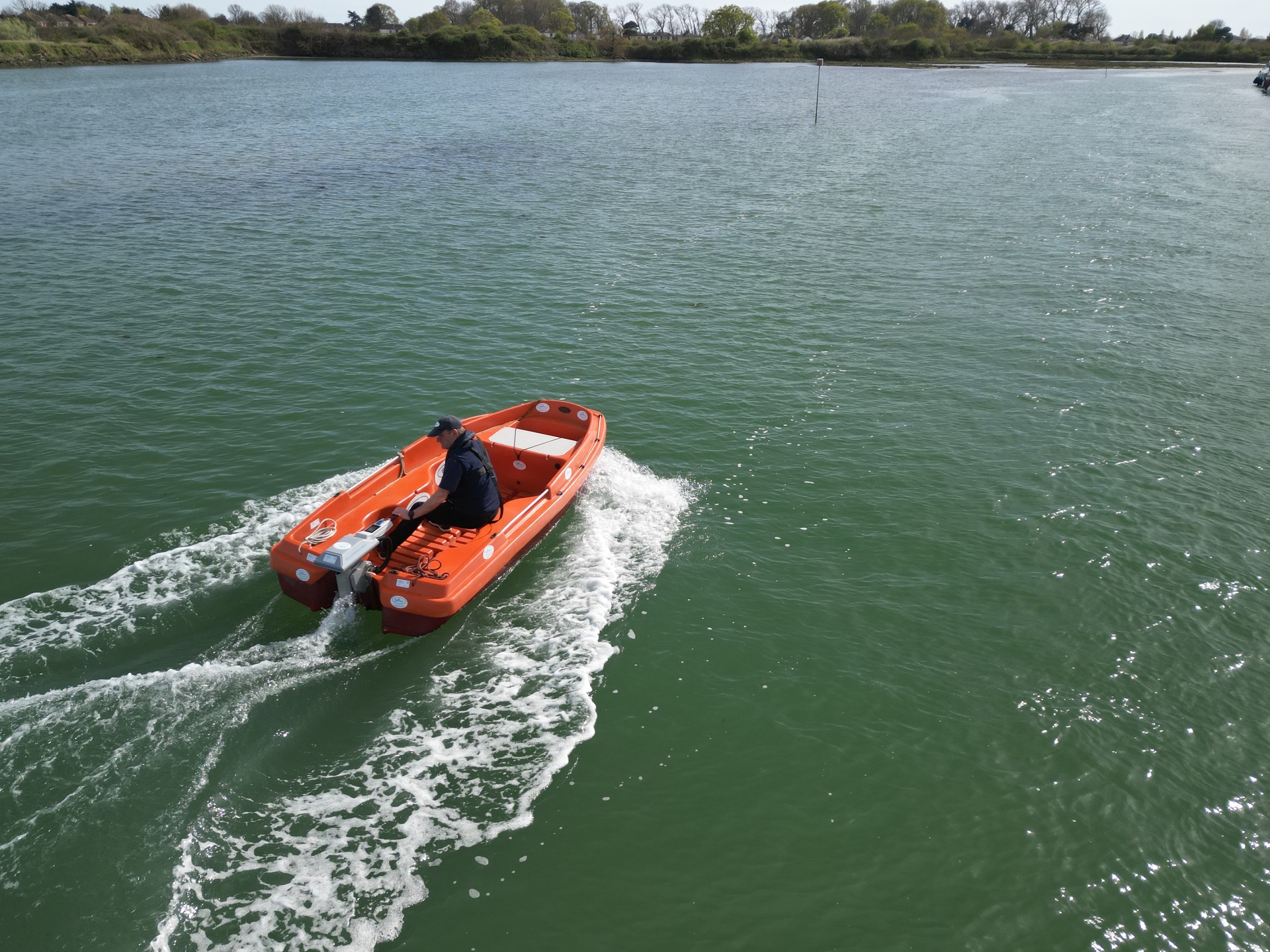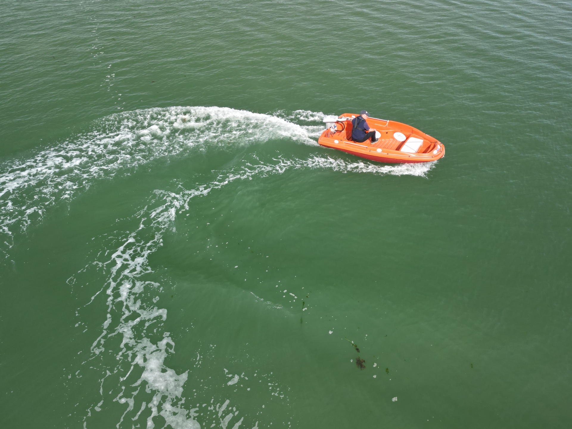 This 2024 New Matic 360 is an electric Rescue Boat from Rigiflex, powered by a 3 kW ePropulsion motor and a 3 kWh battery pack, offering a quiet and eco-friendly boating experience.