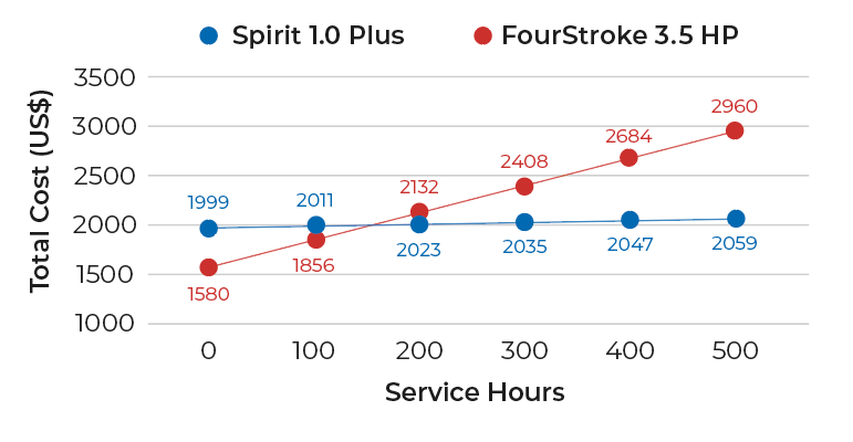And here is the total price of the 3 hp outboard motors as the service hour increases: