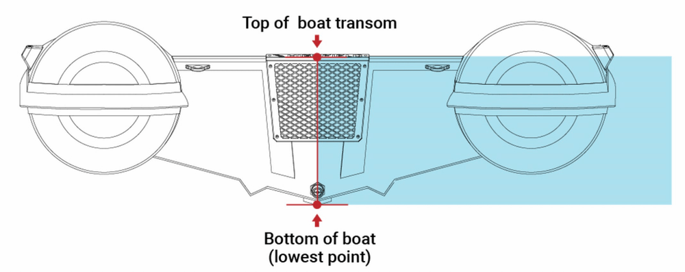 To get an accurate measurement of the transom height, you need to measure the length from the top of the boat transom to the bottom of the boat, as illustrated in the image below: