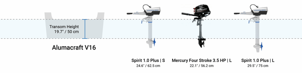 - For boats with the transom height higher than 50 cm / 19.7 inches, a long shaft version is more suitable.