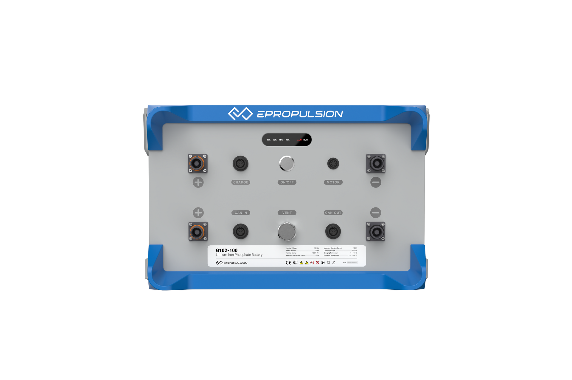 10240 Wh / 96V LiFePO4 battery with 3000 cycles of battery life New connector to ensure 360° rotation is possible.