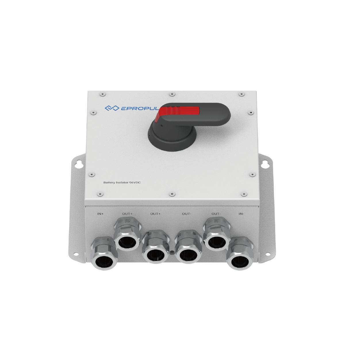 In an emergency, physically disconnect the 96V battery bank from the rest of the system. The system is factory-fitted with a 300A fuse, allowing a maximum current of 300A. This can be manually replaced with a 200A fuse to limit the maximum allowable current to 200A.