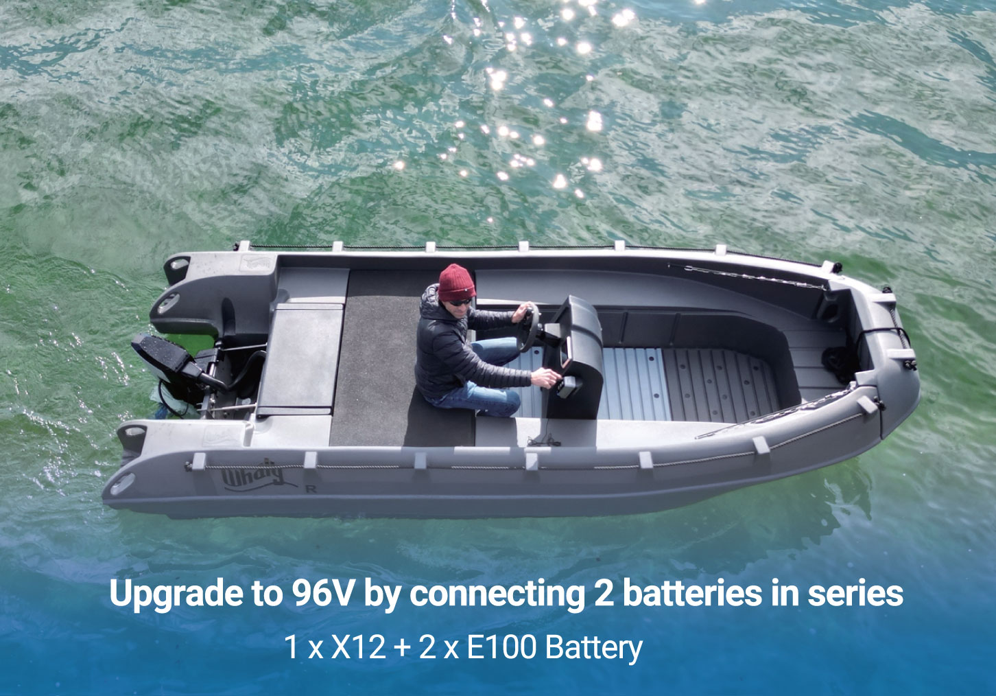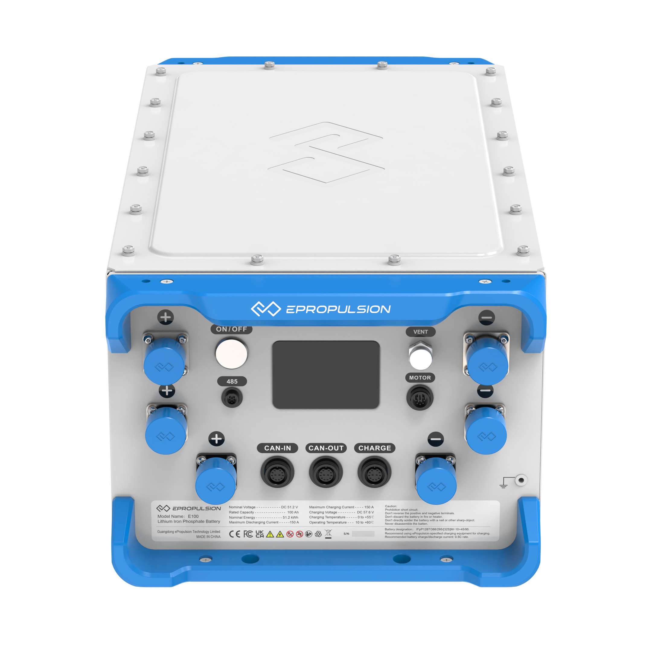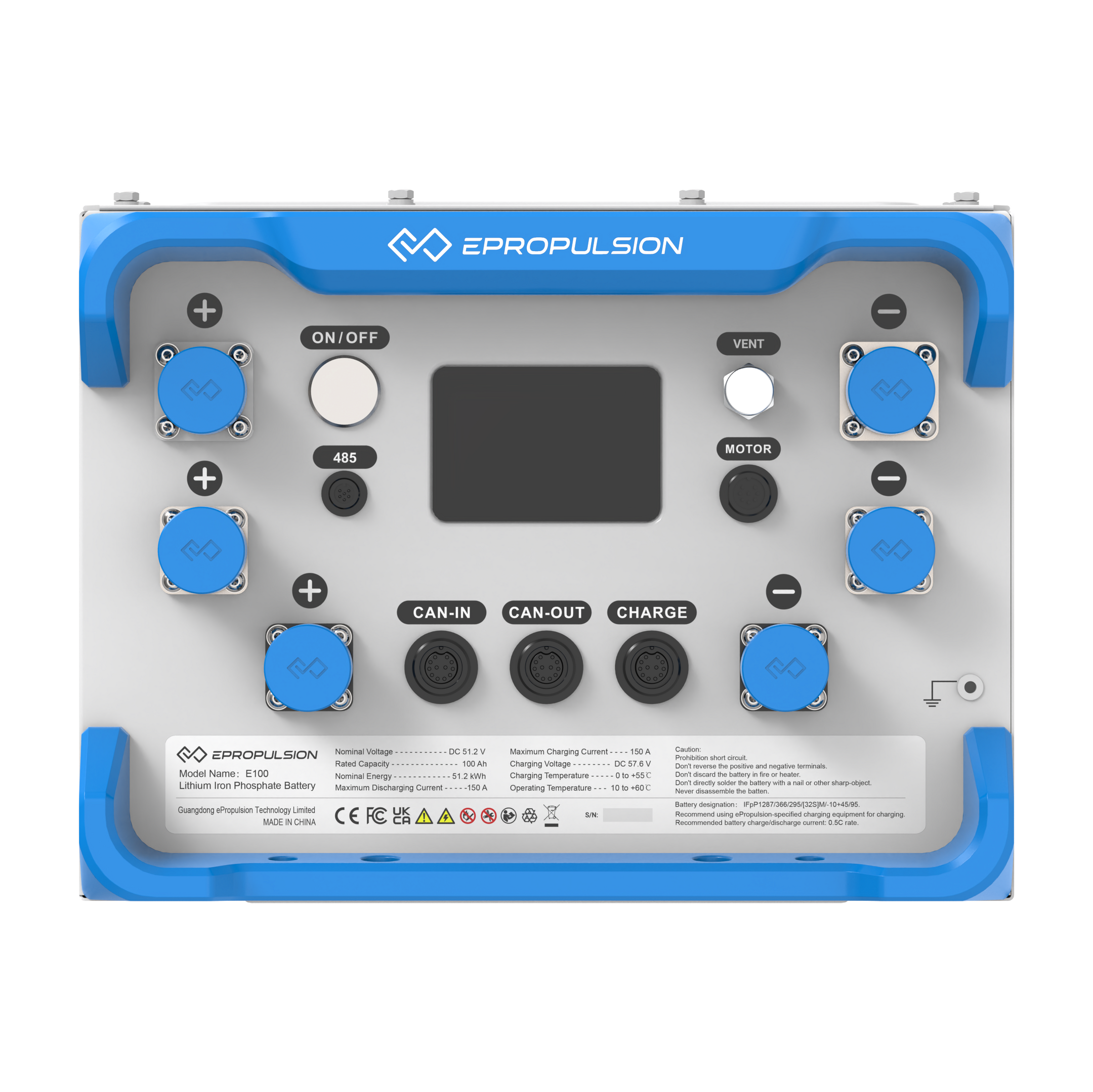 The E100 powers 48V motors (1-6kW) including Spirit, Navy, and Pod Drive models. Uniquely, it is designed to support an upgrade to a 96V system by connecting two batteries in series, making it compatible with ePropulsion X12, P12, and 1-10 motors. - Smart Design & Durability: